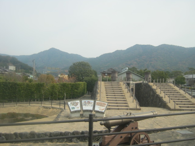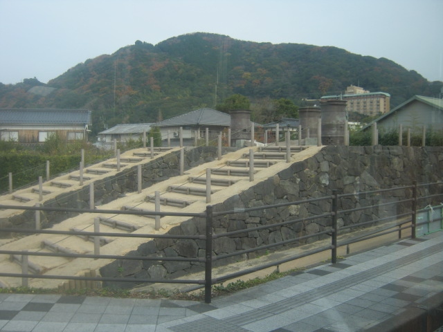 松陰神社のすぐ傍にある、長州藩時代に萩の軍事強化のために活躍した施設を今に伝える広場です。松陰神社の喧騒とはよそに、こちらに関しては訪れる観光客も少なく、ひっそりとした風情でしたが、丁度階段状になっている遺跡のような風情で、個人的にはメキシコのテオティワカンに一瞬迷い込んだかのような、そんなマニアックさも感じられます。