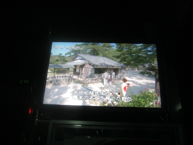 このバスが良いなと思ったのは、運転手席後ろに設置されているモニターで、次のバス停を案内しているのですが、案内の合間に、萩観光に役立つビデオが放映されていて、私は吉田松陰先生に関するビデオを最初から最後まで見て、めちゃめちゃ感動しました。お時間がある方で、一日乗車券等のフリー切符利用の場合は、まず目的地は定めずにこのビデオを鑑賞しながら一周し、二周目以降に目的地最寄りのバス停で下車、といった利用方法がお勧めです。- 旅行時期