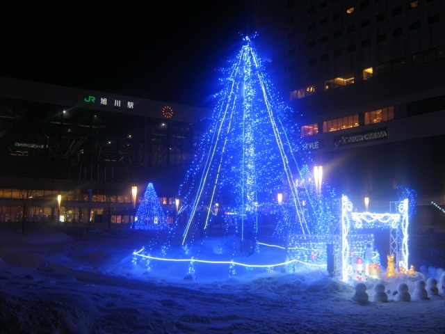ここ数年で、すっかり定着してきた感のある、旭川の冬の夜を彩るイルミネーションですが、コロナ禍が猛威を振るっていた2020-21年の冬も、何とか無事開催されていました。ただ、前年と比較すると違いも確認されていて、一番大きく感じたのは、駅前広場のゆっきリンク(屋外の無料スケートリンク)がこの冬は中止となってしまい、そのスペースにもこれまでには見られなかったイルミネーションが設置されていたことでしょうか。