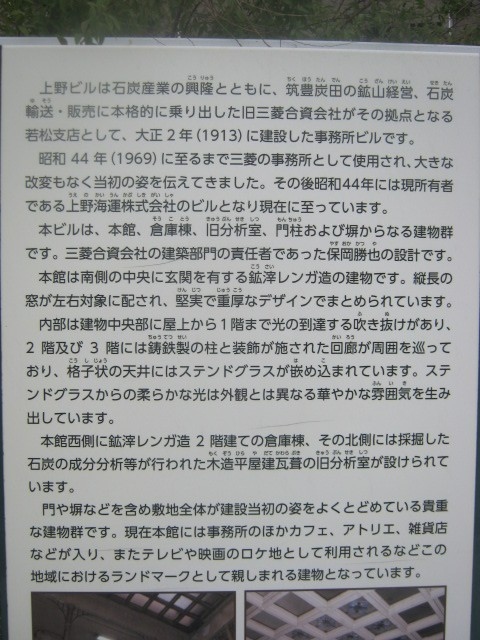 若戸渡船で若松地区に渡ってから、すぐ正面に見つけた歴史ある風情の建造物がこちらでした。地元では通称の上野ビルという名称の方が判りやすいかもしれません。内部見学は可能ですが、2020年12月現在、コロナ禍により、色々な制約がありますので、必ず係員の方の指示に従うようにして下さい。(感染状況により、見学の可否も変更される可能性もあります。)