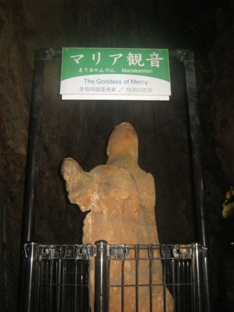 秋芳洞は、観光客に開放されているエリアだけでもかなり長くて見応えがある鍾乳洞ですが、観光ルートとして設定されている最奥の黒谷支洞の最後の方にいらっしゃるのがこちらのマリア観音様です。