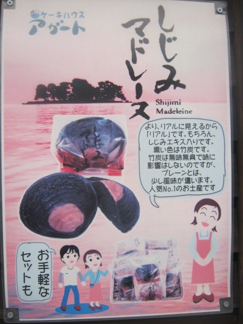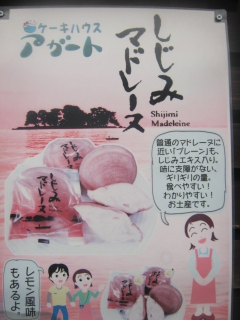 宍道湖名物のしじみエキスを含んだマドレーヌということで、健康にも良さそうなイメージでしたが、ちょっと貝類の生臭さとかあるのかな、と心配になりましたが、そんなことは全くなくて、ふんわりとした甘さにしじみの仄かな香りが溶け込んだ、とても美味しいスイーツでした。それぞれのしじみマドレーヌを食べ比べてみるのもお勧めです。- 旅行時期
