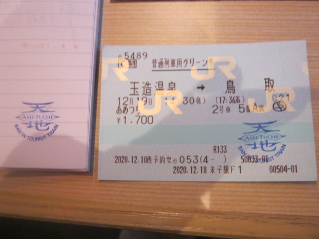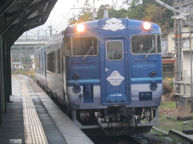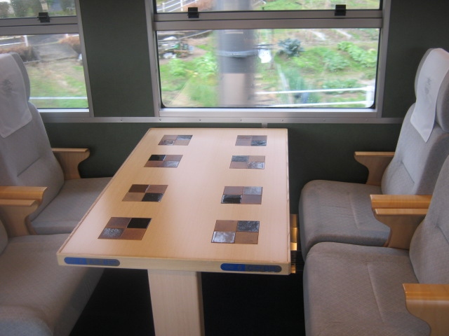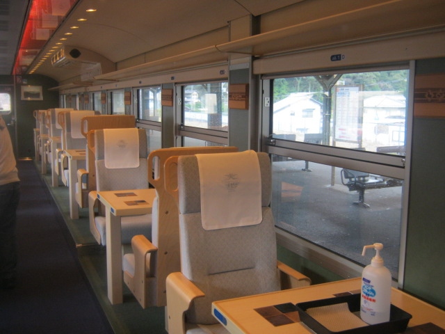 この列車は快速扱いですが、全席グリーン指定となっていますので、グリーン券を購入して乗れるフリー切符には制限があります(18きっぷとかは不可)が、逆にこの制限のおかげで、18きっぷシーズンの運行だったにも拘わらず、車内は一部区間を除いてかなり空いていて、私は上りのみ停車する玉造温泉駅から、終点の鳥取駅まで、約3時間の乗車を快適に楽しむことが出来ました。