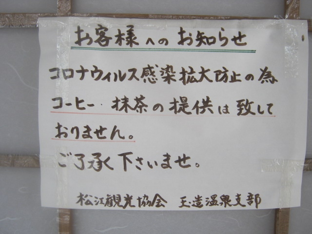 今回は、全国的にコロナの第三波が猛威を振るう中での玉造温泉旅となりましたが、この施設でもその影響が色々と見られました。