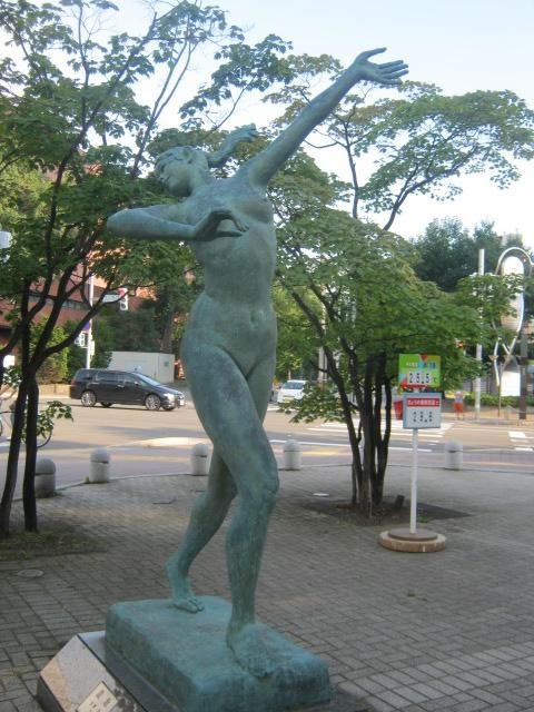 本郷氏の作品は、大通公園の「泉の像」などが一番有名かなと思いますが、人間の躍動的な肉体の様子を凄くリアルに再現していて、どれもとても見応えがあるのですが、ここの像も凄いですね。