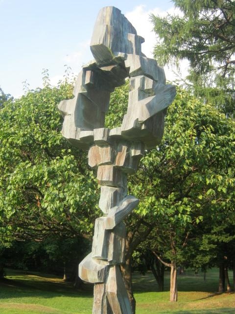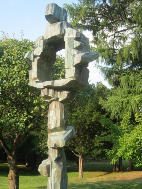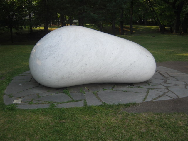 美唄出身の彫刻家、安田侃氏の作品の一つです。氏の作品としては、目立つところでは札幌駅南口にある、中が空洞になったデザインで待ち合わせ場所の一つにも活用されている「妙夢」(このオリジナルは知事公館内にもあります)や、創成川公園の「生棒」「生誕」「天秘」などの作品が有名だと思います。