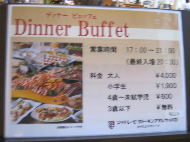 ある意味、コロナのご時世での投げ売りプラン(1泊二食付き、更にプール&温泉、さっぽろスマイルクーポン3000円分も付いて、2600円!)だったので、私のような貧民も利用できたディナービュッフェですが、通常料金を見てびっくり、何と大人4000円もするそうです('◇')ゞ。確かに、普段の貧相な暮らしぶりの人間にとっては、何やら凄い料理ばかりで圧倒されるのですが、正直、コスパに見合うだけの量は食べられないと思いますし、第一、お皿でそれぞれのメニューを持っていくだけでも大変、しかもコロナ対策で手袋必至とかの状態なので、一旦食べ始めたら、また取りに行くのにマスクして手袋して、なんて考えると、ご時世とはいえ面倒くさくて、二の足を踏んでしまいました。