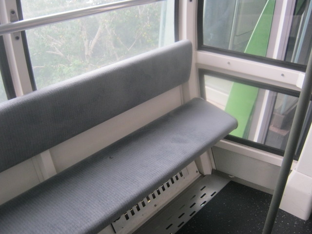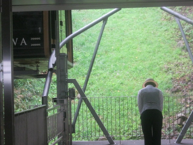 一応、二両編成での運行となっていますが、運行時間は2分にも満たない短時間なので、乗車を楽しむといった風情の乗り物ではないかなと思います。しかも、私は特に帰り道は混雑が嫌で、無料にも拘わらず歩いてロープウェイの中腹駅まで下りましたが、時間を測ってみると、私の足で4分程で下ることが出来てしまう距離でした。