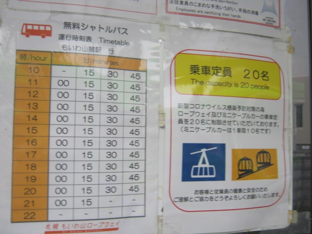 今回は、札幌市がコロナ禍対策の一環として2020年8月に10か所の有料施設で実施していた無料キャンペーンを利用して、約8年ぶりにこちらのロープウェイに乗車してみました。このキャンペーンは特にお盆時期はどこも酷い混雑でしたので、敢えて少し時期をずらして、しかも天気が良くない時の方が空いているかなと思い、雨模様の8月20日に、始発時刻の10時半を狙って訪問してみました。