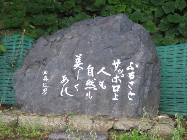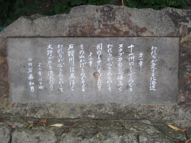 広場と呼ぶ程の規模ではないかな、というのが正直な印象でしたが、歌人として「われらが愛する北海道」の作詞で知られる父・和男氏の石碑には、この代表曲の歌詞が流麗に刻まれていて、私は曲を拝聴したことがなかったのですが、アイヌ語地名なども含まれた素敵な歌詞で、一度聴いてみたいなという気持ちになりました。