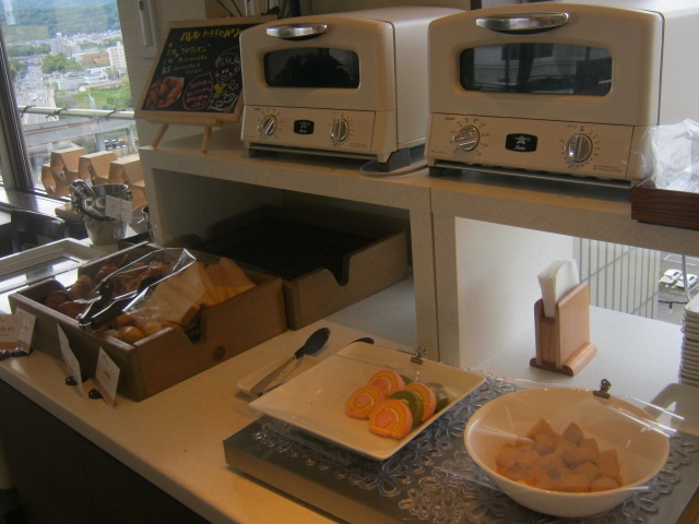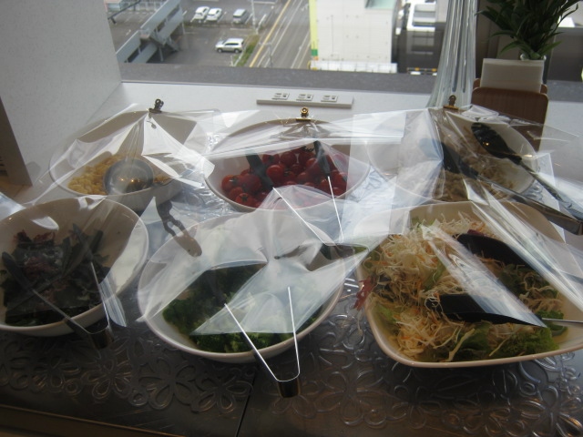 日帰り入浴だけだと850円(タオル付・シャンプー類も完備)で、ホテルの日帰り入浴としてはまあこんなもんかな、という金額で、ランチだけだと1000円とちょっと高めにも感じるのですが、実はこのランチにはサラダバー・ドリンクバーや、更にはパン・ケーキ・アイスクリームなども食べ放題になっていますので、単品メニュー(数種類から選べます)として案内されてはいますが、実はランチバイキング的な価値があって、これで1000円と考えるとコスパは悪くないと思います。しかも、レストランは14階にあって、客席からの展望は素晴らしいですし、ランチは11時半から14時半(LOは14時)までとゆったり過ごせる上、案外、利用者は少ないので、急かされることなくゆっくりとお食事することも出来ます。