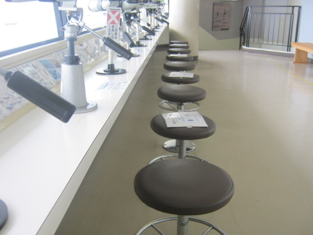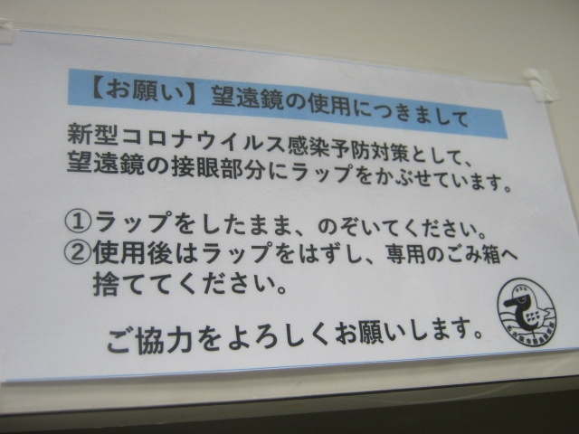 今回は、太平洋フェリー利用で名古屋に到着した後、約4年ぶりにこちらの施設に立ち寄ってみました。2020年のコロナ禍の第二波到来が叫ばれているご時世だったため、緊急事態宣言解除後ではありましたが、ここの名物のズラッと並ぶ望遠鏡も、その一つ一つにラップが掛けられて、使用後は捨てて欲しい旨が記されていましたし、勿論、ソーシャルディスタンス確保のため、そもそも望遠鏡も一つ置きにしか使えない状態でした。