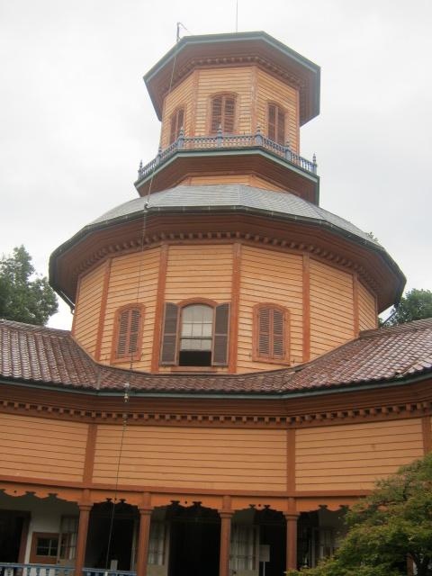 山形駅から徒歩10分程の距離にある霞城公園内にある建造物で、元々は別の場所にあったそうですが、現在はこちらに移設されて大切に管理されている歴史的建造物でもあります。まずその外観の円柱形を中心に回廊上に建物を包み込む下層部分のレイアウトが素晴らしく、被写体としてもとても映える建物なので、お時間がない方でも外観だけは眺めに行く価値のある建物だと思います。