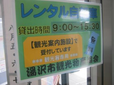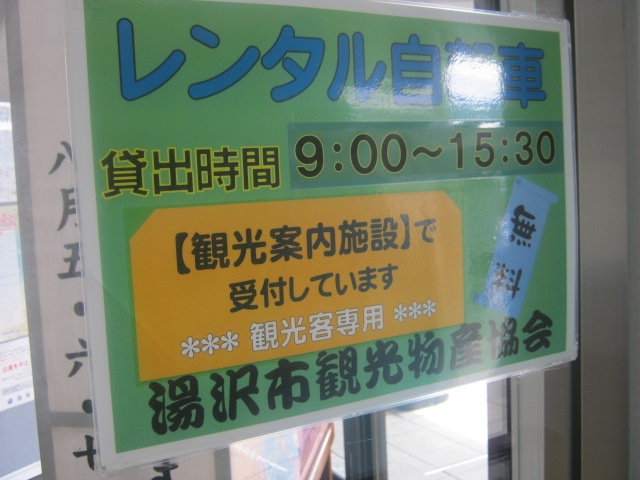 案内所自体は8時からの営業となっていましたが、何故かレンタサイクルは9時からとなっていたため、私は10時前の列車で出発しなければならなかったので、少し無理を言って、早めにレンタルできないかお願いしてみたところ、どうやら、スタッフの方が9時から二人体制になるため、8~9時は一人しかいないので、自転車を用意しているとスタッフ不在になるのが理由、とのことで、レンタサイクルの利用可能時間が1時間遅くなっている、とのことでした。この時は、他にお客さんもいなかったので、早めでも良いですよ、と、快く自転車を用意して下さり、貴重な空き時間を効率的に利用させて頂くことが出来ました。