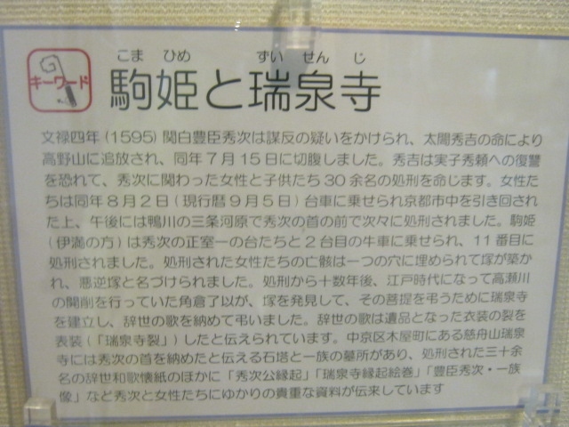 貴重な品々が並ぶメインの展示室は撮影禁止となっていますが、入口付近の展示室に入るまでのエリアに関しては撮影が可能で、記念撮影スポットとしては、入口の義光公と駒姫の前がお勧めかなと思います。