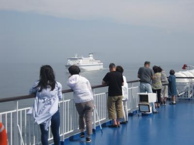 旅の流れとしては、仙台→名古屋便では、旅の序盤に姉妹船とのすれ違いの儀(単に眺めるだけ;実際は大きく手を振ったけど…)があり、これはまず見逃せないですね。その後は日の入り・日の出を眺める儀もあった筈なのですが、この日は生憎の天候で、どちらも見られなかったのが残念でした。B寝台は初めて利用しましたが、利用者は少なくて、ほぼ一部屋貸切(他に同部屋のお客さんは二人だけ)で、快適に過ごすことが出来ました。一応、余裕がある客室に関しては、ソーシャルディスタンシングには十分配慮されているようで、視線に入る範囲内に、他のお客さんはいらっしゃいませんでした。