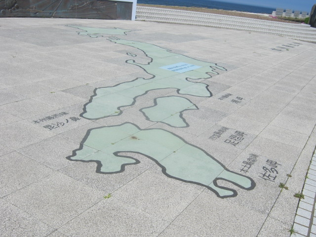 本州という、日本最大の面積を誇る島は、東西南北端のメジャー・マイナー感が二分されているように感じますが、最南端の潮岬と共に、メジャー感のある観光地として認知されているのがこちらの最北端でしょう。ただ、アクセス的には鉄道が通じていないこともあって、潮岬ほどのメジャー感ではないですが、その分、最北の旅情を掻き立てるのには十分な雰囲気に包まれているといえるでしょう。ここで注目しておきたいのは、最北端碑のすぐ傍の地面に描かれている日本各地の最〇端のデザイン、ですが、納沙布岬が”日本最東端”と記されていたり、基本的に、離島は除外されていて、北海道・本州・四国・九州の(本州以外は一部だけ)の端が示されているので、端っこマニア(?)の方にとっては、ちょっとストレスを感じるデザインになっているのかなと、勘繰りたくなってしまうのがまた味わい深かったです。