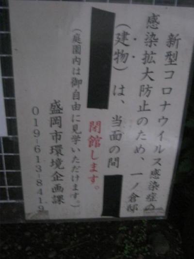 今回は早朝に夜明かししていたネットカフェから盛岡駅に移動する途上でこちらに立ち寄りました。2020年7月現在、コロナ禍の影響で、建物自体の公開は中止しているようでしたが、庭園の見物は可能とのことでした。私は残念ながら、訪問時が早朝だったので、閉門していて庭園内部のメインのエリアは見物できませんでしたが、生垣として邸宅を囲うように周囲に植栽されていた紫陽花が、丁度花の盛りで見事でした。