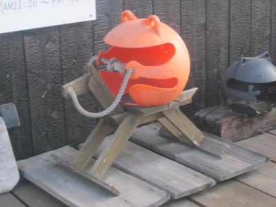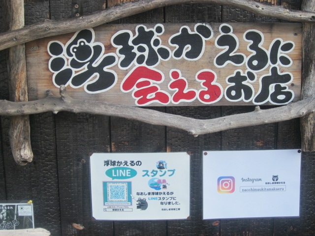 今回の直島の旅において、個人的に一番嬉しかったのは、こちらのお店に出逢えたことです。名前の通り、勿論普通の食堂として営業しているのですが、私は朝早い時間帯での訪問でしたので、まだ営業しておらず、中でお食事をすることはできませんでしたが、ここが素晴らしいのは、店内のレイアウトで、漁具として使用される浮球のリサイクルを目的とした、その名も浮球かえるさんのアートが店内の至る所にいらっしゃるんです!