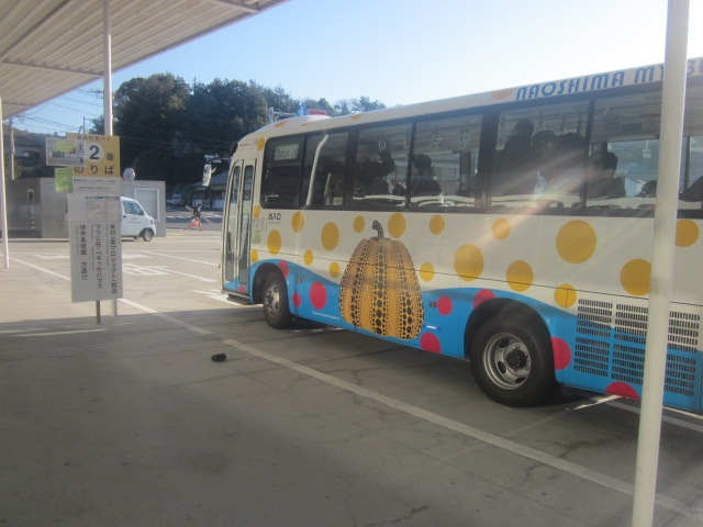 これだけの有名な作品ですので、特にフェリー到着時などは、観光客がどっと押し寄せて写真撮影の行列が出来る、なんてこともありますので、混んでいるような場合は、少し時間をずらしての訪問をお勧め致します。立地的には宮浦港のすぐ脇、同港に到着するフェリーからも、海の駅なおしまからも堂々と見えますので、迷うことはないです。