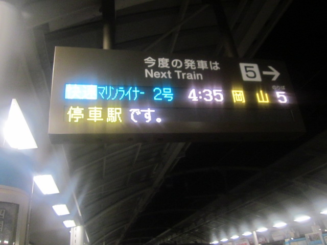 特に18きっぷなどのフリー切符利用時には時間を有効活用という意味で、その利便性は絶大と言えますが、いわゆる大都市圏ではありませんので、日付を跨ぐマリンライナー運行時には、18きっぷでは翌日のスタンプが出札時に必要になったりしますので、終電まで有効のルールに慣れていらっしゃる大都市圏の18きっぷユーザーの方は、ちょっと注意が必要かなと思います。(勿論、連続の日付で使用される際には何の問題もないかと思いますけどね…。)
