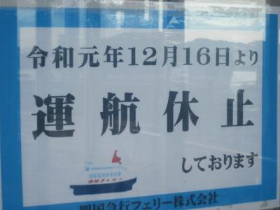 完全廃止となると、恐らく4トラさんのサイトでも、廃止扱いになってクチコミも投稿できなくなってしまうと思いますが、あくまでも、休止の段階で廃止扱いにしてしまうのは間違いといえますので、敢えて、2019年12月下旬の”休航”後の様子を取り上げさせて頂きます。