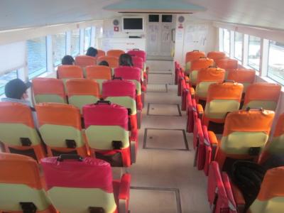 今回の私は、高松→直島航路ではフェリーに乗船しましたが、2018年に就航したばかりの新造船「あさひ」での船旅となり、とても綺麗な船でしたので、乗り心地も良かったです。直島→宇野航路に関しては、タイムスケジュール上、小型船を利用しましたので、船内は狭かったですが、まあ15分で到着しますので、それ程苦にも感じませんでした。
