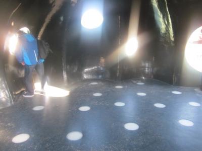 まず、中に入れるようになっているのに驚かされましたし、かぼちゃの各所に光が差し込むように穴が穿たれていて、丁度私の訪問時は晴天に恵まれましたので、かぼちゃ内部の床面に拡がる光のドット柄もとても美しくて感動しました。