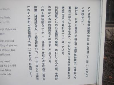 倉敷を代表する企業、倉紡の歴史を紹介する記念館で、現在はアイビースクエアとして整備されている美観地区の東側エリアの北口を入ってすぐ左手にあります。元々は原綿を補完する倉庫として使用されていた建物だそうですが、それを昭和四十年代、会社の創立80周年を記念して改装して記念館として整備したとのことでした。