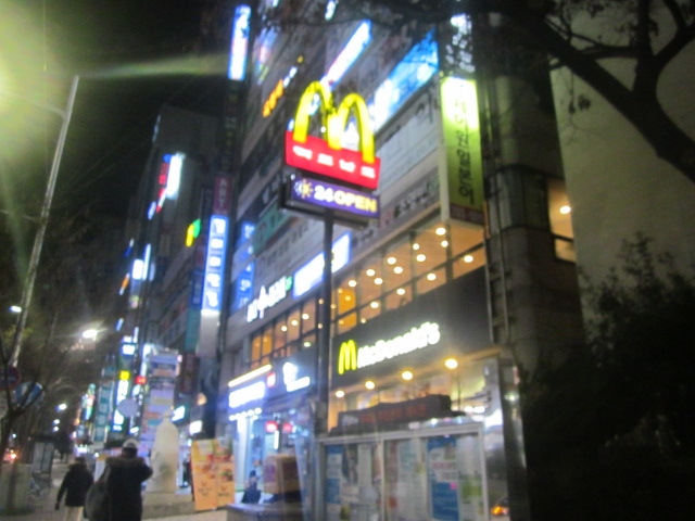 夜間の到着なので、付近の様子はよく解りませんが、基本的に駅前には何もない風情、仕方がないので、暫く歩いたら、10分ほどで大通りに出て、そこにはマクドナルドもあったので、時間潰しには不自由しませんでした。