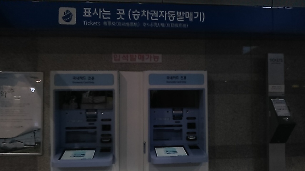 KORAILの乗車券は、窓口で買うとペラペラのレシートみたいなのを渡されるのが嫌で、自販機利用という方も多いかと思いますが、あの自販機はクレカ払いの場合、韓国発行の者しか使えないので、カードしか使えない自販機だけだとストレスを感じますが、この駅には、現金も使える自販機も設置されていて、無事、カードタイプの乗車券を現金利用で発券することが出来ました。