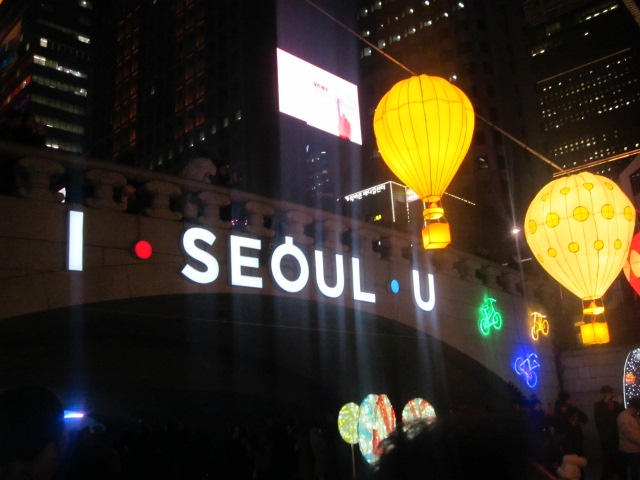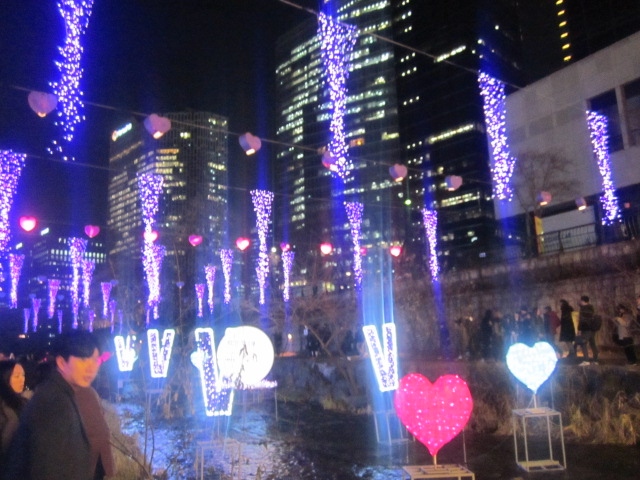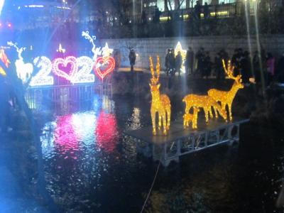 今回は敢えて、一番混雑するであろうクリスマスイブの夜、というタイミングでの清渓川のイルミネーションはどんな様子なのか、怖いもの見たさで訪問してみました。