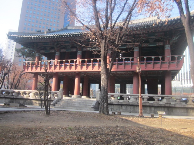 ソウルを代表する”鍾閣”として知られる普信閣ですが、ここは通常は建物の直近まで立ち入ることが出来ず、少し距離を置いた角度で眺めるしかないのですが、エリアとしては、まさに都心のど真ん中でもあり、清渓川や明洞といったソウルを代表する観光スポットへも近いので、待ち合わせ場所などとしても利用価値が高いと思います。