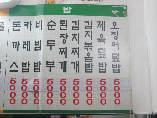 今回私は、ここにあるプンシクの一店舗を利用しましたが、各メニューが5000Wで統一されていて、値段でメニューを選んでしまいがちな貧民にとっては、どれをオーダーしようか迷う、といったレアな体験(?)を楽しむことが出来ました。