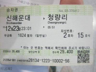 今回は、話のタネにと思って、敢えてソウルの清涼里行きムグンファに乗るのに、釜田からではなく、新海雲台駅を利用してみました。