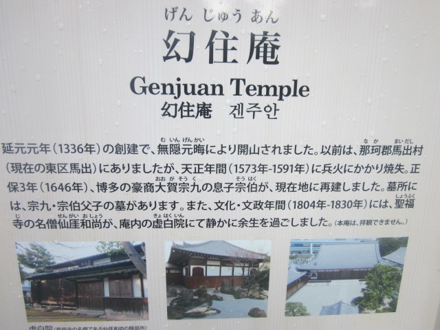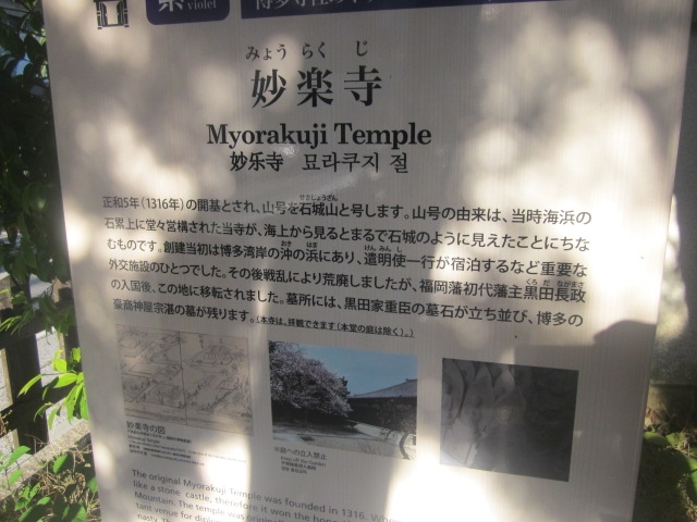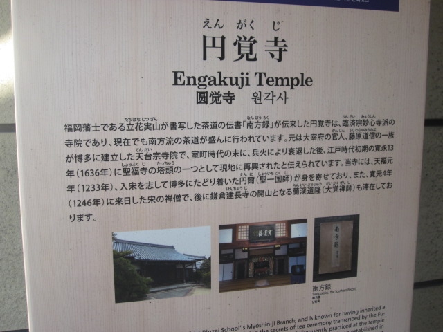 と申しますのも、門が閉ざされていて、中は拝観できないような風情は観光向きではないのですが、ここは門前にしっかりとした解説板が設置されていて、それを読むと、日本史の教科書にも出てきたような大物(蘭渓道隆)が滞在したことがある、とか、凄いことが書かれていて、他にも茶道の拠点として栄えた歴史なども綴られていて、価値の高いお寺であることは十分に理解することが出来ました。