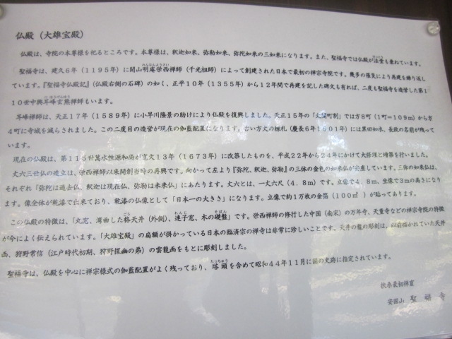 勿論、内部が殆ど覗けないことに関しては物足りなさを感じますが、こうした解説板があると、歴史的な経緯などはよく解って勉強になりますので、”閉鎖型”のお寺の多くも、こうした姿勢は見習って欲しいなと思いました。- 旅行時期