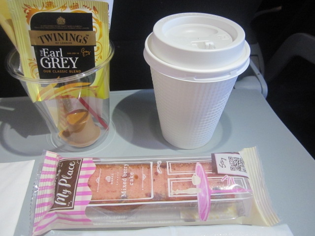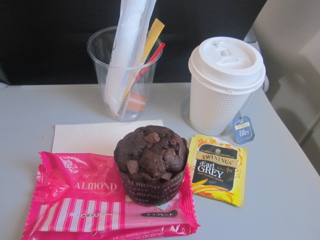 その代わりに、チョコレートマフィンとミックスベリーケーキ等とホットドリンクがセットになるプランで500円(通常よりも50円お得)で販売されていたので、今回は2区間でそれぞれを試してみましたが、チョコレートマフィンはポロポロとこぼれて食べ辛い、ミックスベリーは小さ過ぎて割高感ありまくり、と、何れもなんだかなぁ、というメニューに感じました。