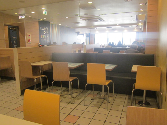 今回は、近鉄奈良線沿いに、この辺りの駅直結マクドナルド店舗を数店舗利用しましたが、その中では、個人的にはこの店舗が一番気に入りました。まず、立地的には瓢箪山駅から徒歩30秒ほどのまさに近距離にあって、駅と店舗とを挟む歩道沿いに、瓢箪型の小さな池を配していて、休憩スペースになっていたりするので、季節が良い頃には、敢えて店舗内で食べずに、テイクアウトにしてこちらで食べたりするのも気持ち良いだろうな、なんて想像が膨らみました。おトイレも店舗内にありますので、学園前駅の店舗のようなストレスもないですし、客席も広いので、東生駒駅店のような閉塞感もないかと思います。ただ、瓢箪山駅自体が急行は停まらない駅なので、鉄道利用の利便性、という点のみが、少し劣っているかなと思われる程度なので、店舗そのものの内容としては、この辺りの駅直結マクド店舗としては、ここを一番お勧めしたいと思います。