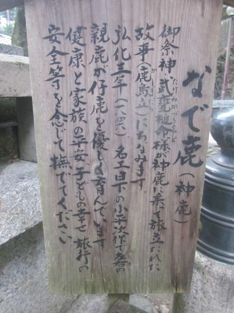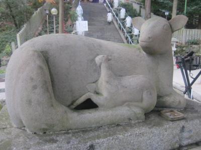 ここでの見所は、本殿手前の石段脇にいらっしゃる撫で鹿さんで、親子のなかなか微笑ましいお姿なので、被写体としても人気を博していますが、勿論、神社内ですので、安産祈願などのご利益を求めて撫でて行かれる方も多いようでした。- 旅行時期