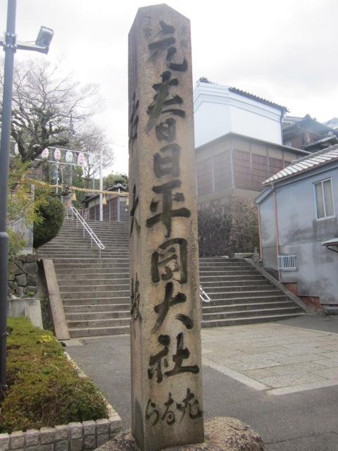 近鉄奈良線の枚岡駅から、徒歩ですぐのところにある神社で、鉄道利用者には特にお勧めできる神社なので、近鉄の初詣パンフレットでも、よくお勧めの詣で先として紹介されています。駅から本殿までは、少々石段登りが長く続きますので、歩きやすい靴での御参詣をお勧め致します。