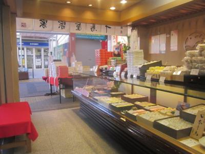 大阪の和菓子屋さんとしてお馴染みの千鳥屋宗家ですが、今回は瓢箪山稲荷参拝ついでに、商店街内にあった瓢箪山店を利用してみました。八戸ノ里駅からは近鉄奈良線沿いに4駅奈良方面に向かった瓢箪山駅最寄りで、駅からは徒歩1分程度の近距離です。朝の訪問でしたので、店内は空いていて、ちょっと座って休める赤絨毯の茶席スタイルのイートイン(?)で、軽く休憩しながら頂くことが出来ました。