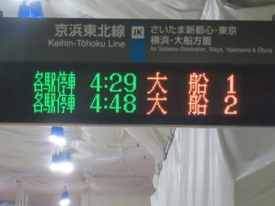 今回は18きっぷ旅程ということで、終電が遅く、始発の早い首都圏では、宿やネットカフェは無駄だと思い、夜中の1時頃に大宮に到着し、4時過ぎに大宮を出発する、という怪しげな夜間徘徊を経て、始発の大船行き乗車を敢行しました。