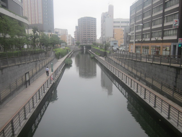 スカイツリーのすぐ傍を流れる、北十間川沿いに続く、河川公園がこちらです。水面傍に遊歩道が通じていますので、上段の道を歩いても、下段の遊歩道を歩いても、快適なウォーキングが楽しめます。特に下段の遊歩道に関しては、橋下通路に要注目で、ここには浮桟橋型の歩行者通路が設置されていて、川の水位に応じて浮き沈みする、という、なかなか画期的なデザインの通路になっていました。こういうのを見ていると、流石大都会は違うなあと思ってしまいますね。