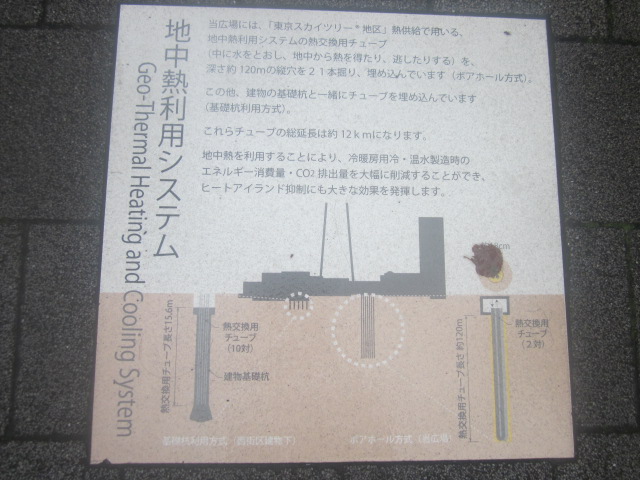 私の訪問時は霧に阻まれてダメでしたが、角度によっては、この彫刻越しにスカイツリーの展望台を眺めると、宙に浮いたようなアングルで眺められる、とのことで、是非、お天気に恵まれた際には、このソラマチひろばの彫刻越しに、スカイツリーを見上げてみて下さい。