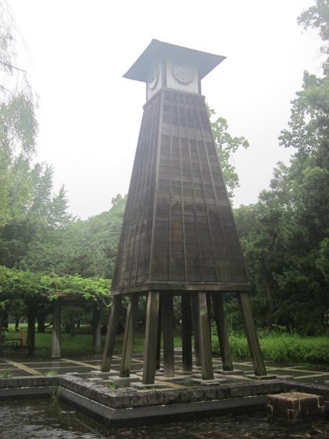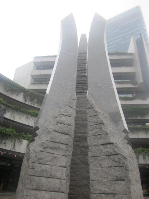 スカイツリーと同様、反りのある形で立てられた三本の石柱は、それぞれ「人・天・地」を表象しているそうで、未来の安寧を祈る彫刻作品として製作されたそうです。