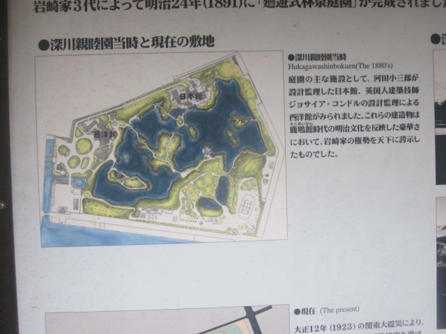 今回は、芭蕉の有名なカエルの句碑がある、ということで、カエルマニア的な興味からたまたま訪問した清澄庭園でしたが、ここは元々は「深川親睦園」として、立派な西洋館や日本館を配した立派な庭園だったそうです。