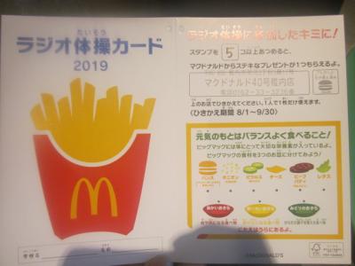 またここのマクドナルドは、昔から地域に根付いた感の風情があって、夏休み期間中はラジオ体操でスタンプを集めて商品ゲット、なんて、お子様には喜ばれそうな企画も行っていらっしゃいました。こうした地域貢献活動は評価したいですね。