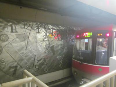 今回は東京到着後、最初は京急を利用し、そのままこの地下鉄路線を継続して、往路は泉岳寺から押上まで乗車してみました。 その際に利用したのが成田空港までの直通運行列車でしたので、最初は京急・次いで都営浅草線と乗りましたが押上で降りてしまうと、全く京成路線に乗車することなく京成車両を利用、という、不思議な体験をしているように感じました。