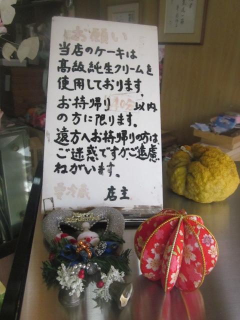 ただ、ここの隠れた名物は実は洋菓子とのことで、反対側のショーケースには、ショートケーキなども並んでいました。ただ、これはお手製のため保存が効かないそうで、すぐ食べる方限定、的な注意書きも付されていました。- 旅行時期